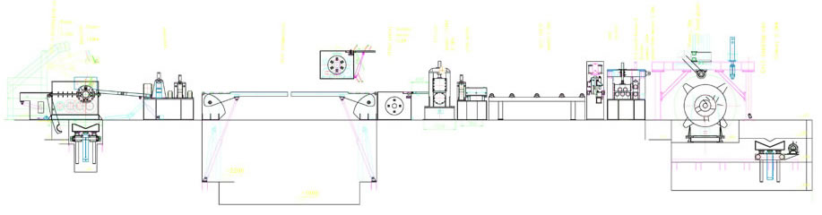 Линия продольной резки рулонного металла большой толщины обеспечивает раскрой листа стали в полоски заданных характеристик. Данная линия состоит из двухшпиндельного разматывателя, блока загрузки, портальной направляющей для листа, прижимного блока, двухвалкового податчика, пятивалкового блока правки, кромкорезательного станка, ротационного стола, центратора, дисковых ножниц, намотчика срезанных кромок, механизма обеспечения натяжения, портального разделителя, блока разгрузки, гидравлического блока, системы электрического регулирования.